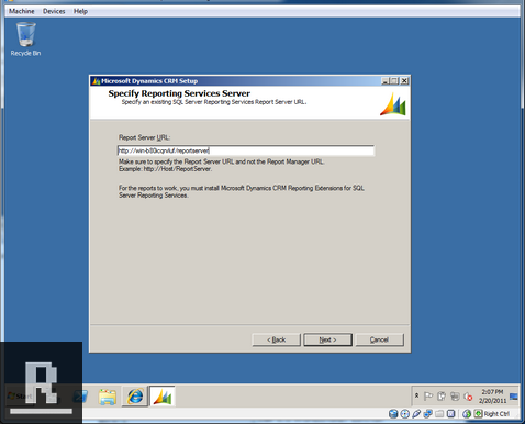 Specify Report Services Server. It should auto populate with your reporting server. Click Next