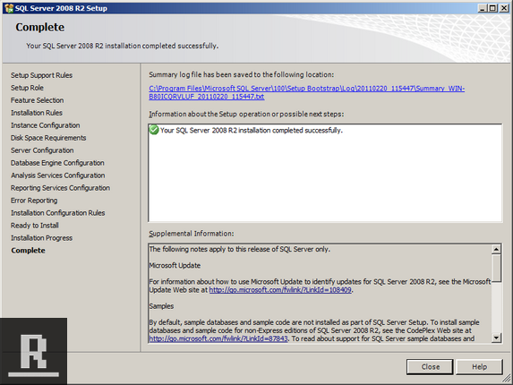 Click Install which will install the SQL Support Files.