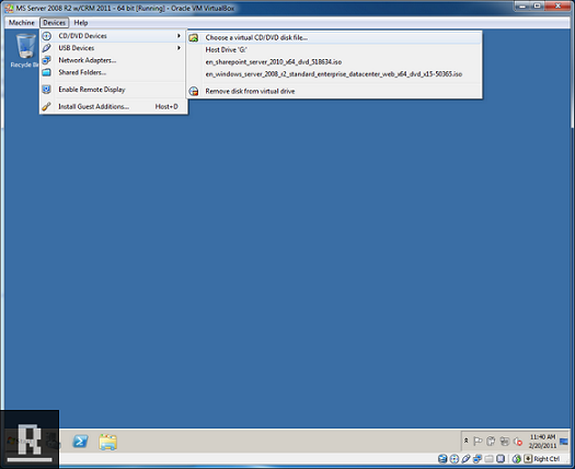 For an ISO click Devices -> CD/DVD Devices -> Choose a virtual CD/DVD desk file -> Pick the SQL Server 2008 R2 ISO