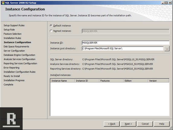 Make sure Default instance is selected, click next