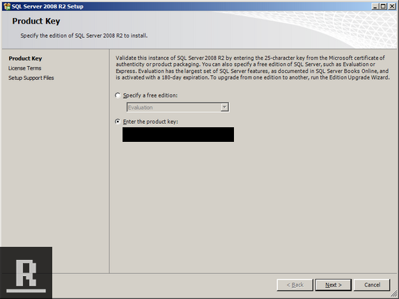 Enter your product key and hit next