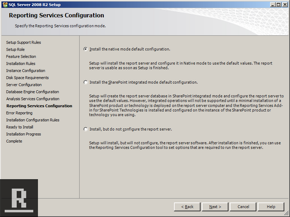 Make sure “Install the native mode default configuration” is selected, and click Next.